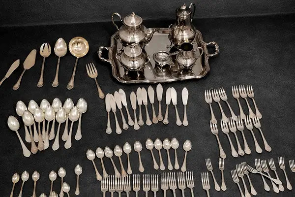El valor de una cubertería de plata se determina principalmente por su contenido real en plata, pero no es el único factor.